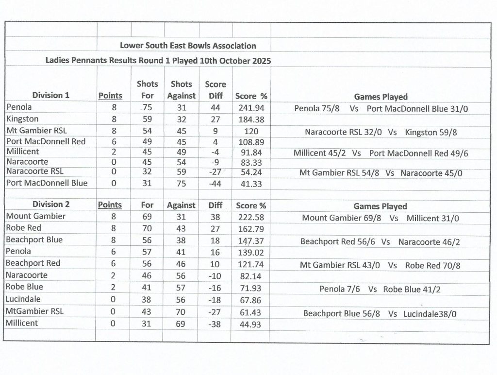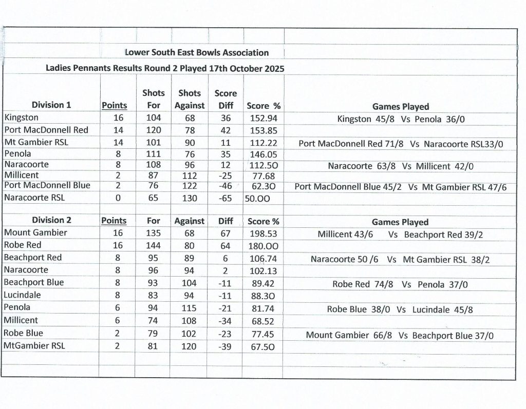 Programme and news for lawn bowls in Millicent