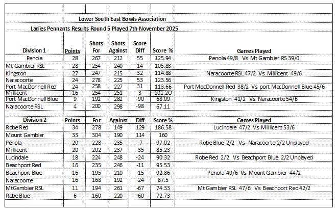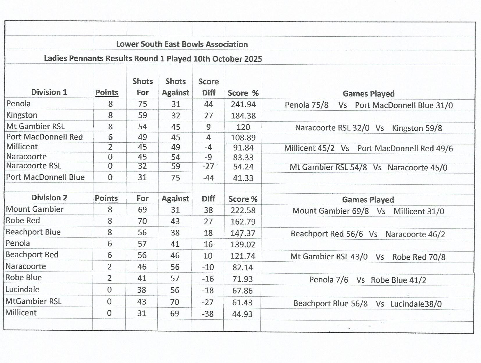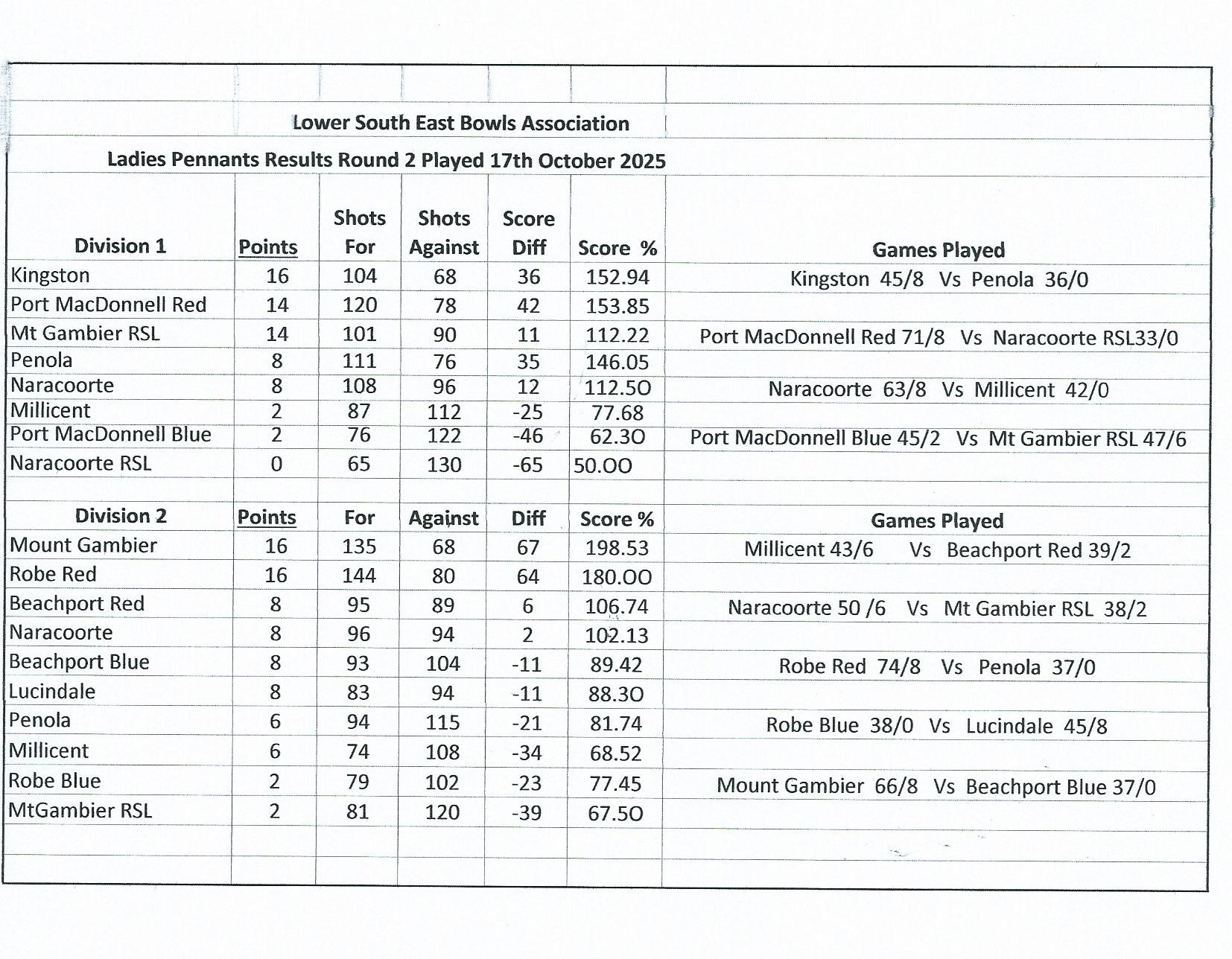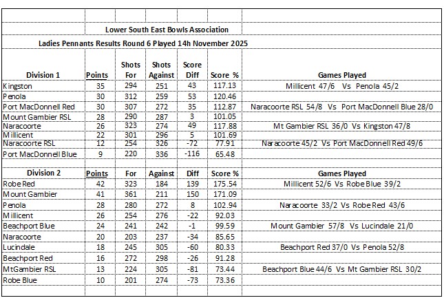 Ladies’ Results & Ladders