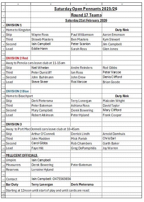 Please read the highlighted section on the new Heat Rule. If you are unable to read this copy please look at the copy on the Team Board at the Bowls Club.