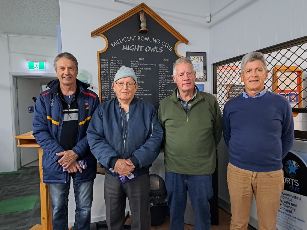 Winners in White Division: The new team Half Cut (Jayden Williams, David Berzel, Terry Chant, Mick Parish) defeated Newbery Newbies 29+21, X Factor 28+9, Gizzies 26+3, Lions Roar 25+ 3
