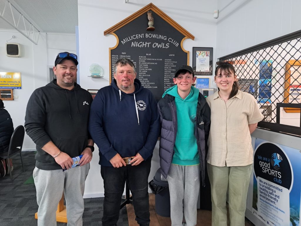Winners in White Division: Goobies (Breanna Porter, Blake Porter, Paul Whitford, Martin Cameron) defeated Easy Beats 28+6,  Gizzies Crew 26+7, Newbery Newbies , X Factor 25+2, Unbowlievables  25+1.