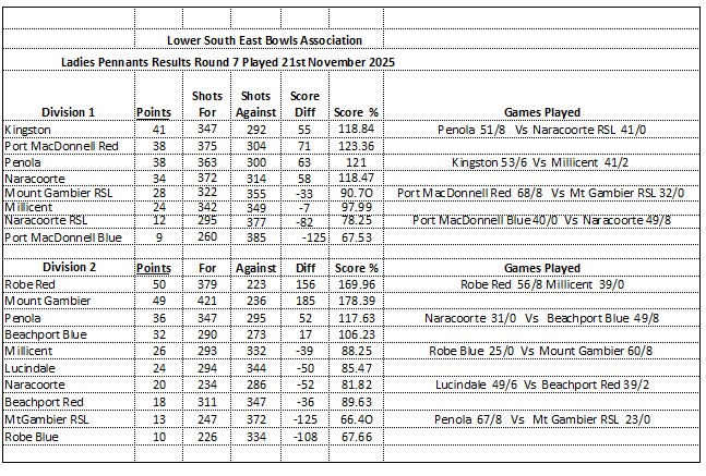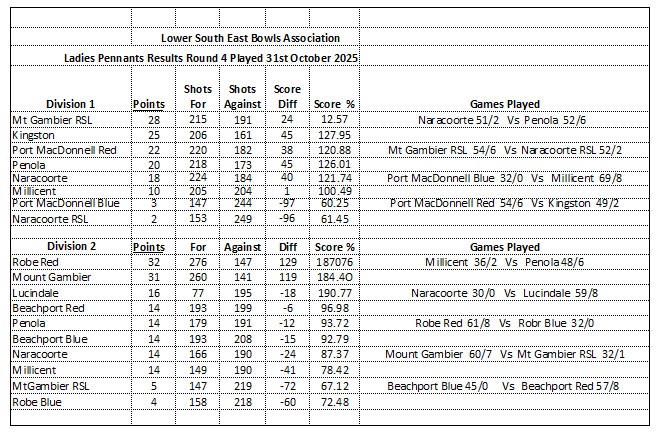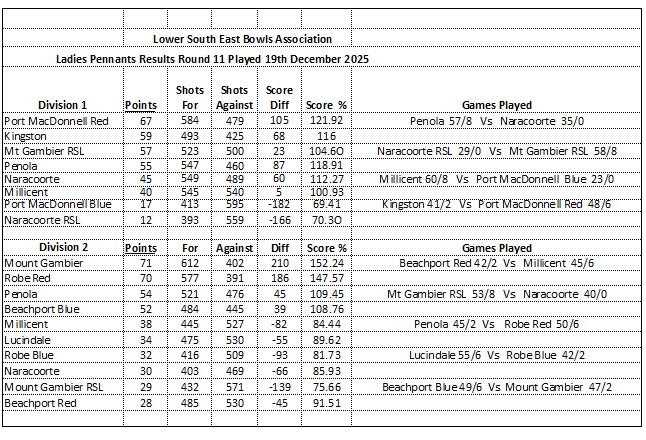 Ladies’ Results & Ladders