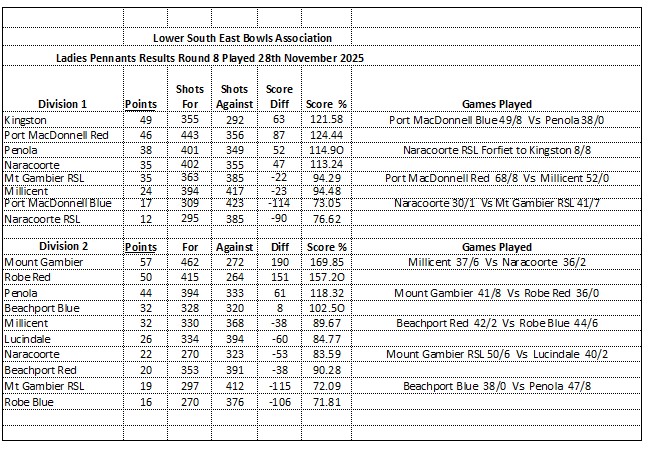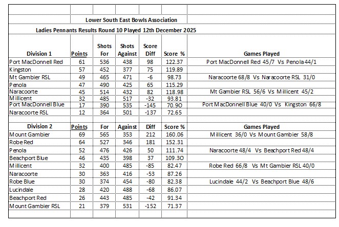 Programme and news for lawn bowls in Millicent