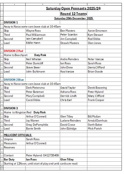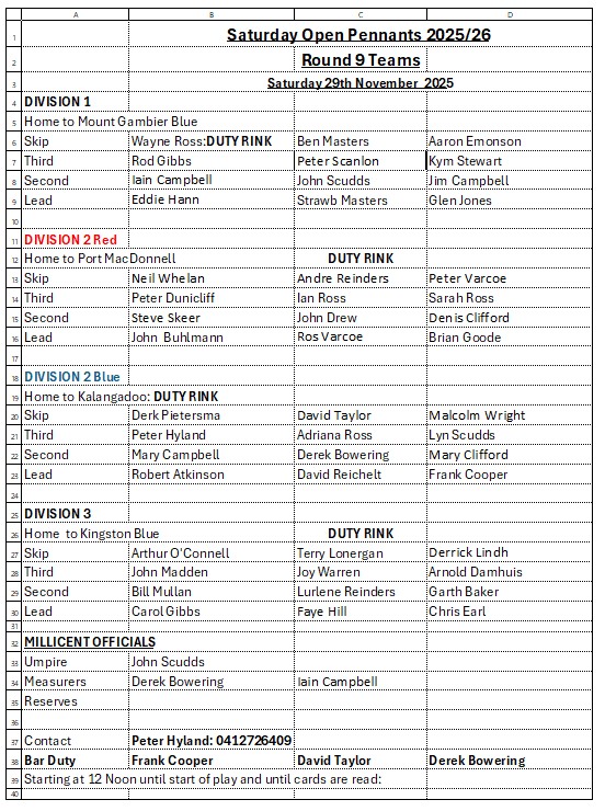 On the 14th September the Millicent Bowls Club hosted the Scudds/Earl Shield Day which is played annually between Millicent and Mt. Gambier RSL with games being played over 21 ends. This competition has been running since 2006 with the Mount Gambier RSL winning 17 of the 20 years and Millicent 3 times. Mount Gambier took the honours again this year with a final score from the 12 teams playing, Mount Gambier RSL 234 shots to Millicent 216