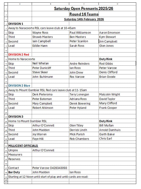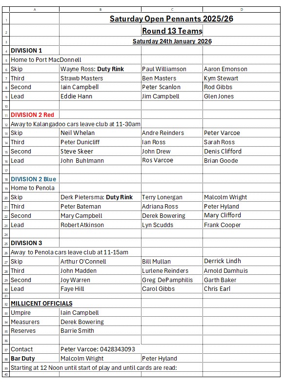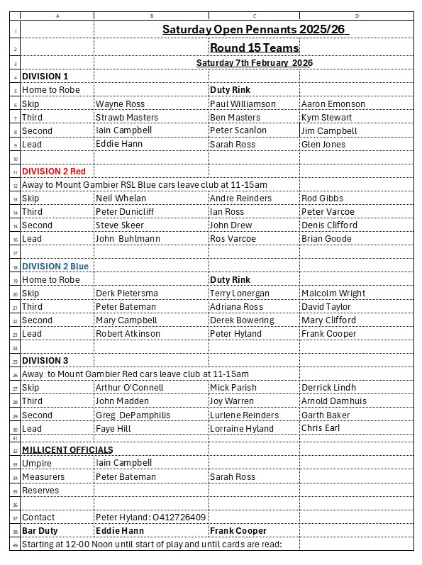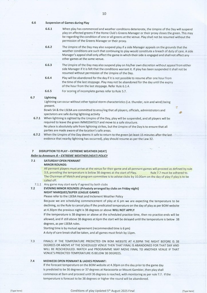 Please read the highlighted section on the new Heat Rule. If you are unable to read this copy please look at the copy on the Team Board at the Bowls Club.