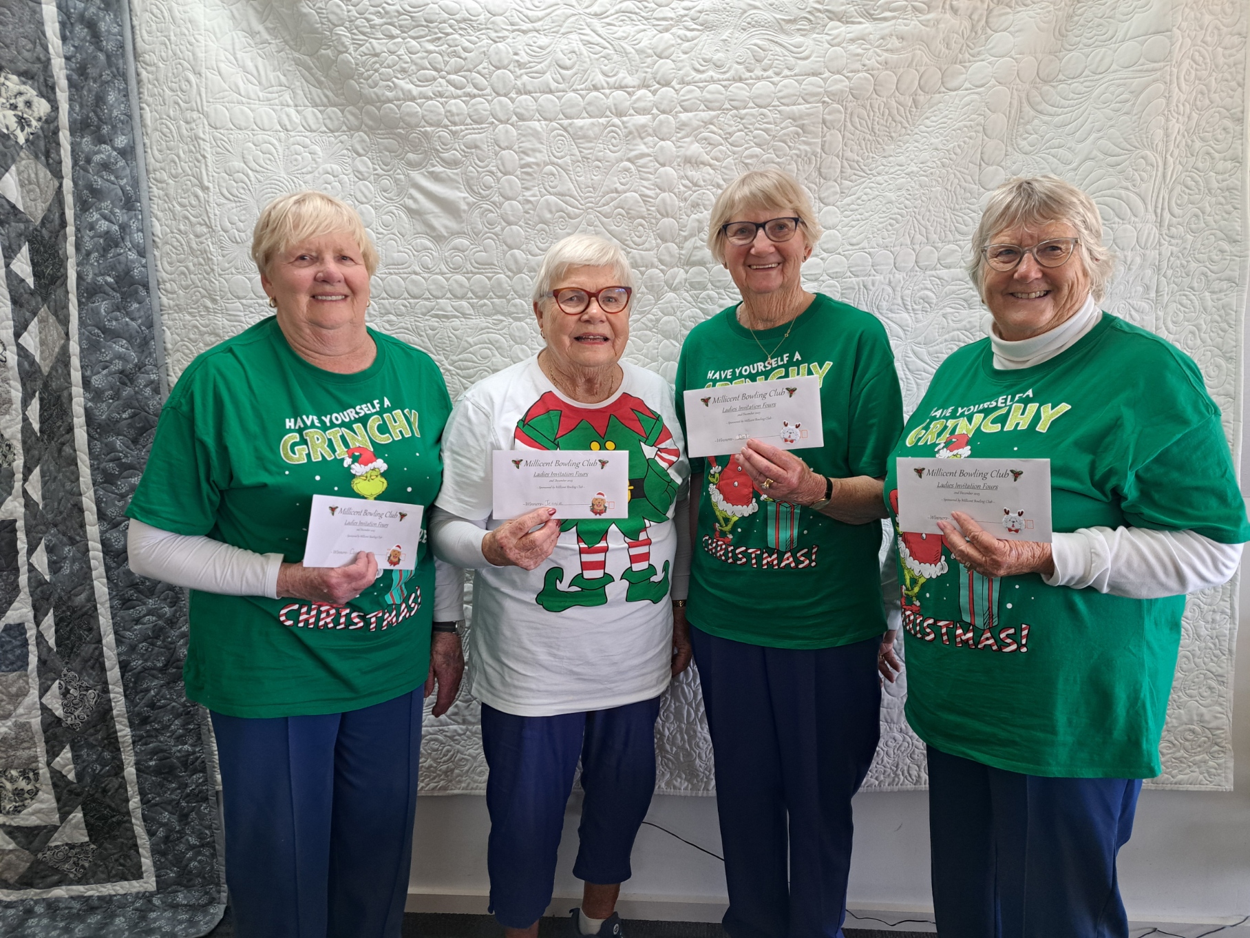 The Millicent ladies hosted their Invitation Fours with players to dress in Christmas theme. Players travelled from as far as Bordertown to play.