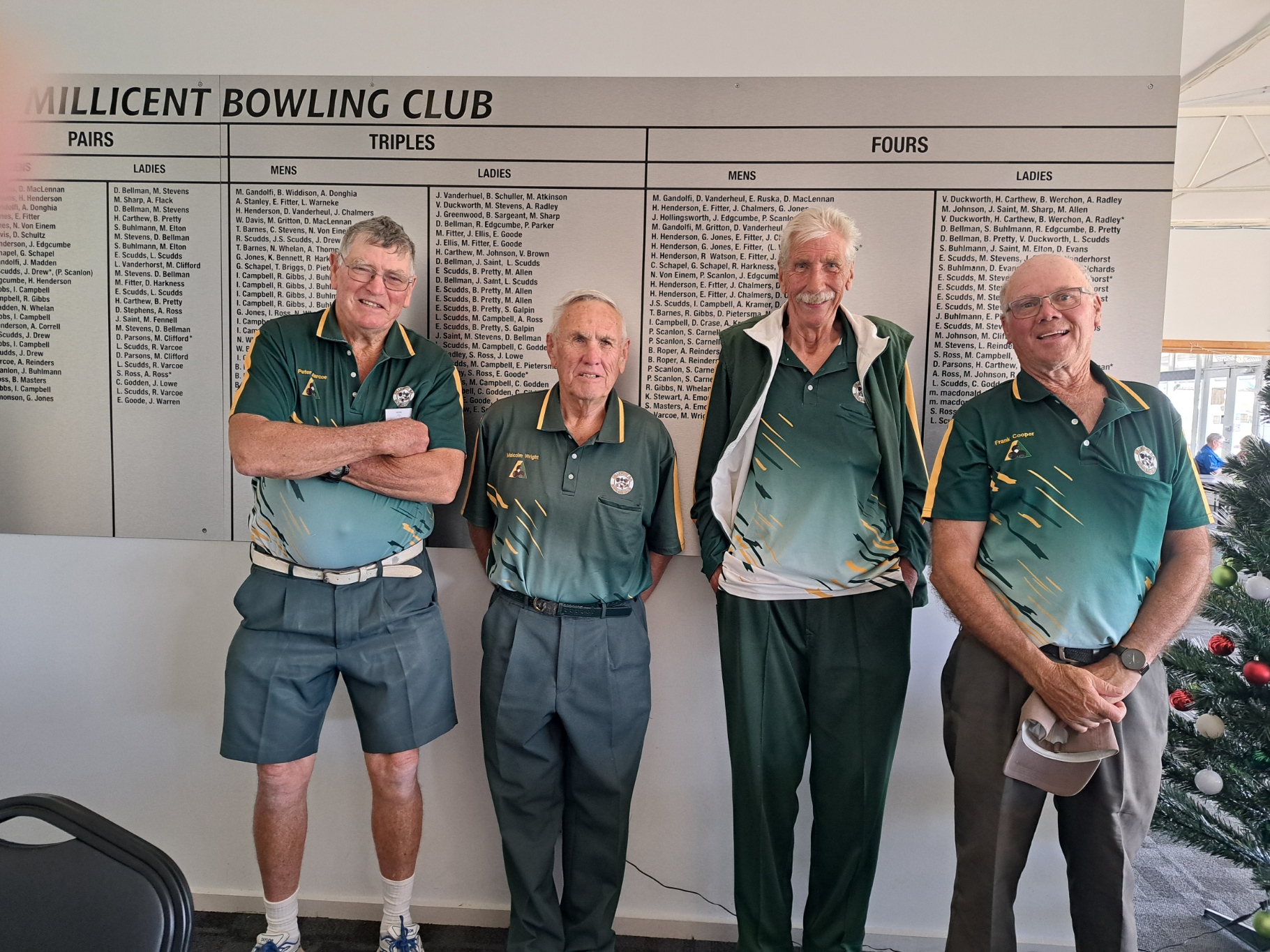 The Millicent Bowls Club held their annual Men’s Championship Fours, with all games starting at 8-30am on Saturday the 3rd January 2026.  The games leading up to the Grand Final were all played over 12 ends with the Grand Final played over 15 ends.