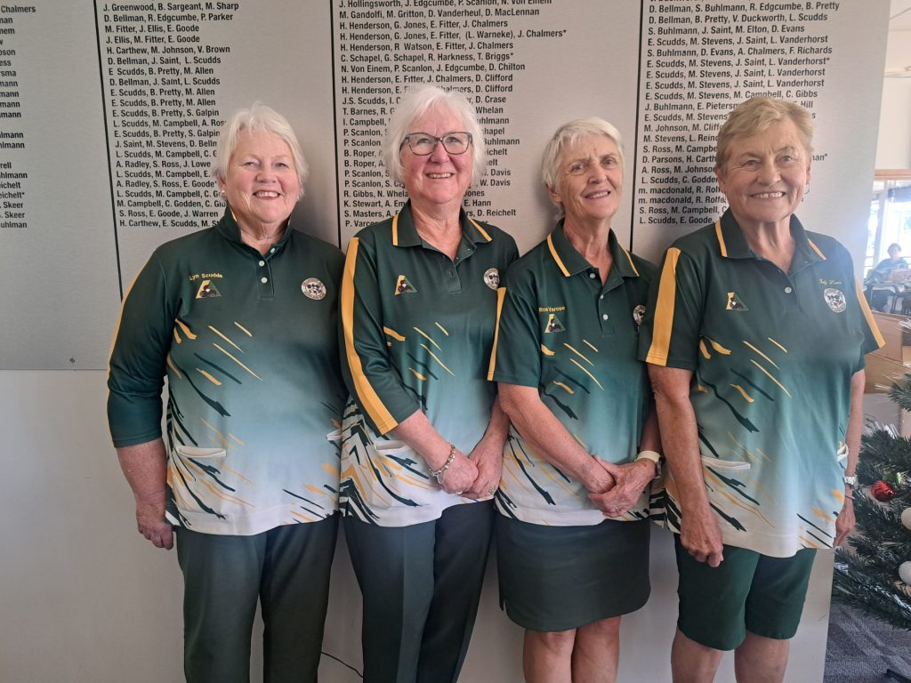 The ladies the Grand Final saw the teams of Lyn Scudds, Elaine Goode, Judy Lowe and Ros Varcoe taking on, Lorraine Hyland, Merle Stevens, Margaret Johnson and Joy Warren. Due to very unfortunate circumstances, with Margaret Johnson having to be taken by ambulance to hospital and with the score sitting at 16 to 2, Lyn Scudds team were declared the winners and Champions for 2025 season.
